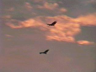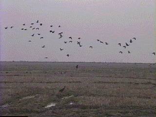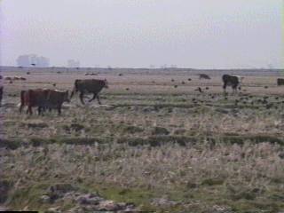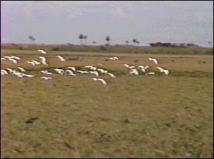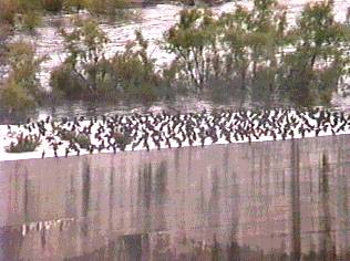 ミナミオオセグロカモメはウミネコの2倍ほどもある巨大なカモメだ。海岸の護岸などに一列に並んでいる様は見事である。性質は荒々しく、餌を取り合って競う様子は壮絶ともいえる。漁船やフェリーの後を追ったり、畑でトラクターの後を追っているが、ウルグアイでの特別の集合地は牛や羊の屠殺場だろう。ハゲタカのいないモンテビデオ周辺では完全にゴミ掃除屋の役割もしている。ラプラタ河に排出される都市下水の出口も格好の餌場で、いつも数十羽がたむろしている。内陸部へ採餌のため朝早く集団で出かけるグループも多く、内陸50ー100kmまでは日帰りをしているようだ。海鳥の仲間で数の多いのはユリカモメ、アジサシの仲間である。