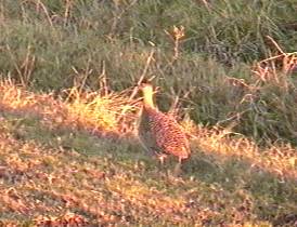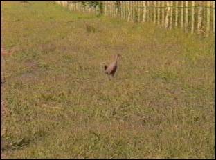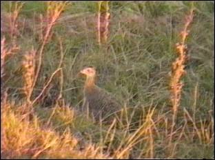 ウヅラに似た鳥で放牧地の至る所に営巣する。人間が近づくとうずくまって隠れるが、ごく近くまでゆくと突然飛び出して不器用に羽ばたいて逃げる。3ー5mの高さを滑空して300ー500mも一気に移動する。一般的に空気銃の標的とされる。似た種類にやや大型のものもいる。