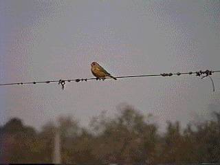色・形はノジコかアオジに似ている。常にペアで行動し、パンパグラスなどのやや高い場所に陣取って小さなさえずりをする。地味な鳥ではあるが飼い鳥にされることもあり、近寄ってみるとオリーブ色で意外に美しい。人が近ずくと一定の距離を飛び離れてまた止まる。