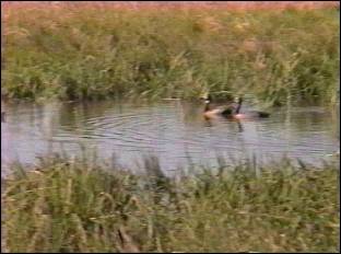 カモ類の密度は低い。餌となる植物が夏期には乾燥のため少ないこと、冬期は越冬のためさらに北部に移動するためであろうと思われる。また人を恐れる種類が多く、過去に狩りの対象とされたことが伺われる。その中で独特の形態を持つパンパリュウキュウガモ(ガンに近い)は人を恐れず、タハマールなどに定住することが多い。ピリピリという可憐な鳴き声から茂みに入っていてもその存在がわかる。