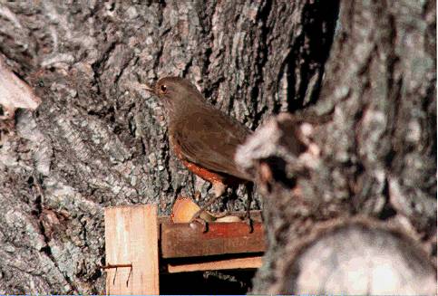 ツグミの仲間は世界中どこでも鳴き声の王様とされる。ウルグアイでもシロツグミ、クリイロツグミとも鳴く姿は見せないが、茂み全体から声が聞こえてくるような美声を聞かせてくれる。地面に降りて餌をあさる姿は平凡な小鳥である。