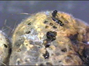 このような多胚生殖は他にもジャガイモトビコバチ、キンモンホソガトビコバチ、ヒゲナガコマユバチなどで知られていますが、せいぜい何十倍に増殖する程度です。多胚生殖の生理についてはまだ不明な点が多いのです。 交尾や越冬についてもまだ詳しいことがわかっていません。