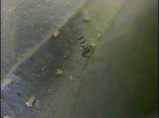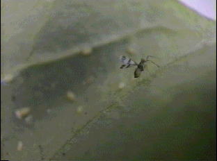 翅をたてて走るトビコバチ