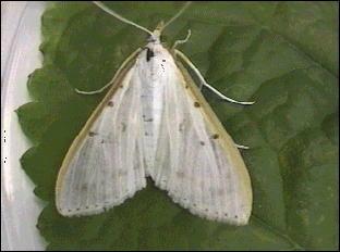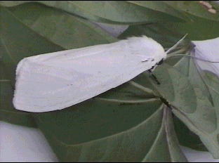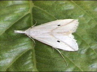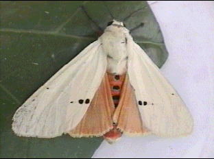 白い蛾はほとんどすべての科に見出されます。白い色が生存や生殖行動にどんな効果があるのかは不明です。純白な地にわずかに配置されるスポットやラインの鮮やかな色が白色を引き立てることは確かでしょう。
